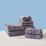 Conjunto de 8 Toalhas Quadradas, 4 Toalhas de Rosto e 2 Toalhas de Banho e 2 Toalhas de Banho, Conjunto de Toalhas de Banheiro de Lã Coral.