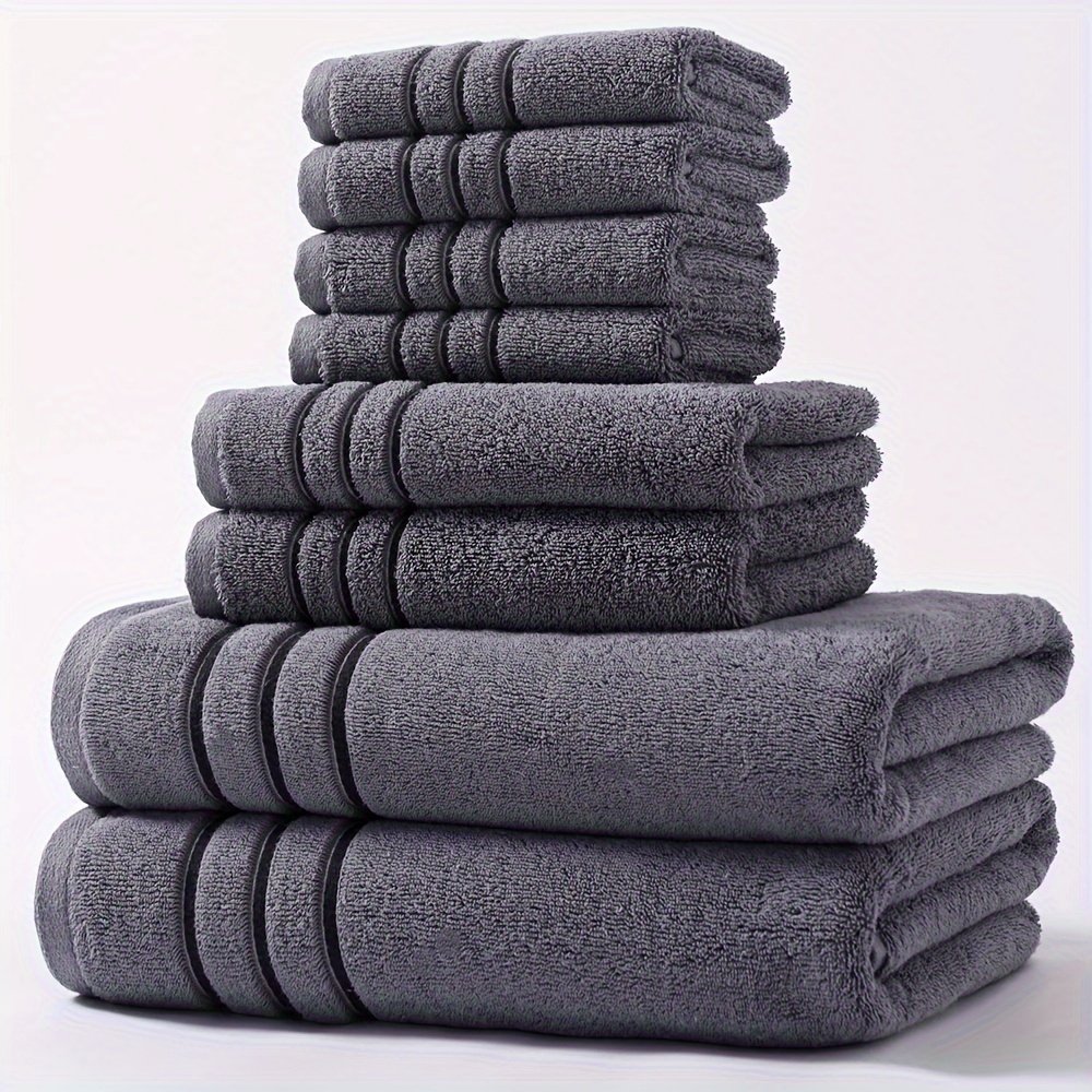Conjunto de 8 Peças Com 2 Toalhas de Banho, 2 Toalhas de Banho, 4 Tamanhos de Toalhas Com Padrão de Listras Estreitas de Lã Coral, Conjunto Combinado de 8 Peças, Conjunto Espesso, Toalha Macia Absorvente de Secagem Rápida, Toalha de Banho Adequada para Banheiro, Panos de Lavar.