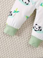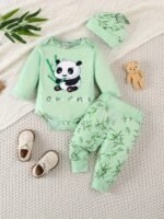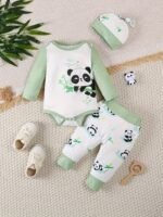 Conjunto de Três Peças Finas Com Estampa de Panda para Recém-Nascido, Blusa de Manga Comprida + Calça + Chapéu p/ Primavera e Outono, para Atividades Ao Ar Livre.