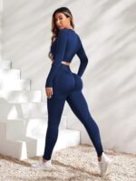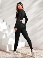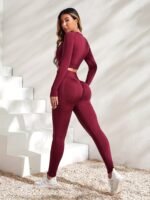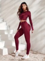 Conjunto Feminino de 2 Peças Controle de Barriga e Cintura Alta – Blusa Elástica de Manga Comprida e Legging de Corrida