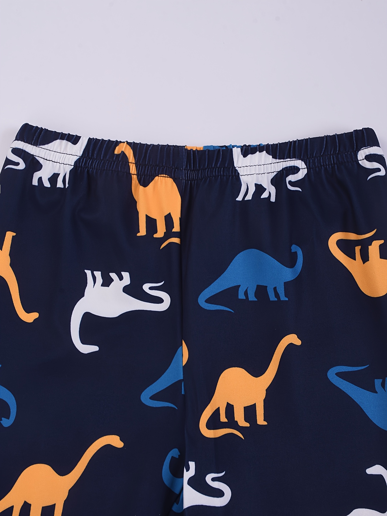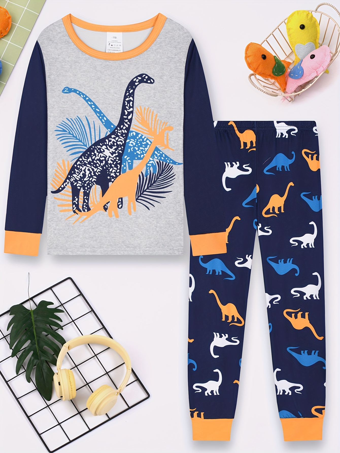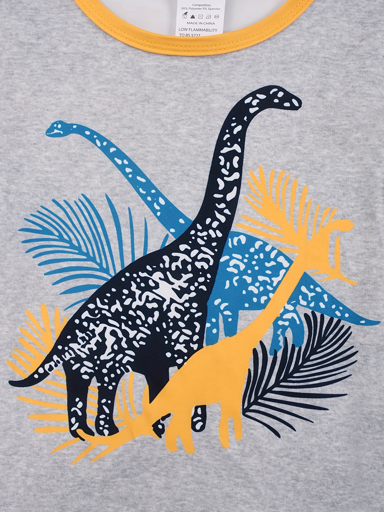 Início Vestuário Infantil / Juvenil Conjunto Infantil Com Mangas Compridas e Calças, Estampa dos Irmãos Dinossauros, Tecido Retardante de Chamas Testado, Cor Bege Claro, Confortável.
