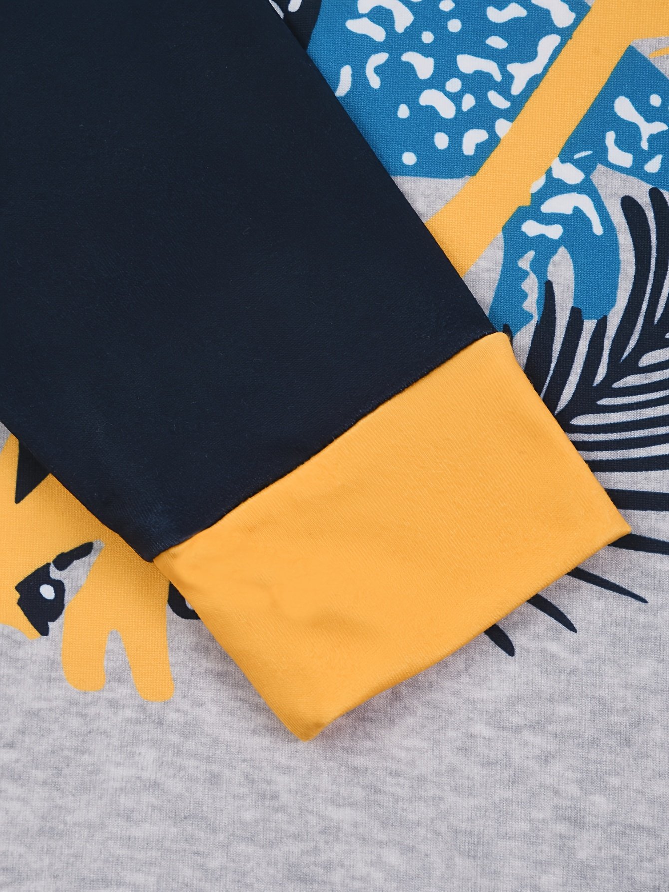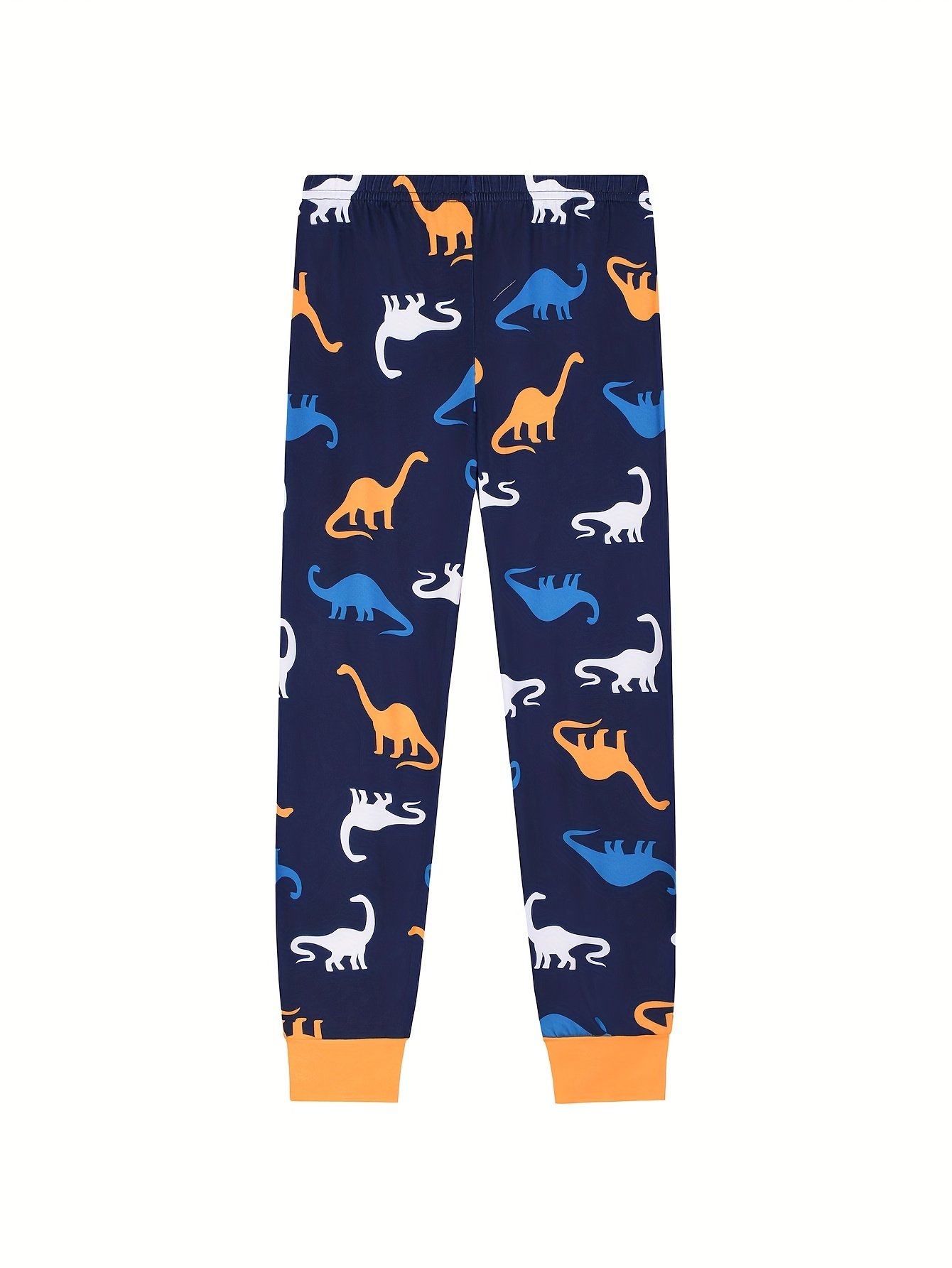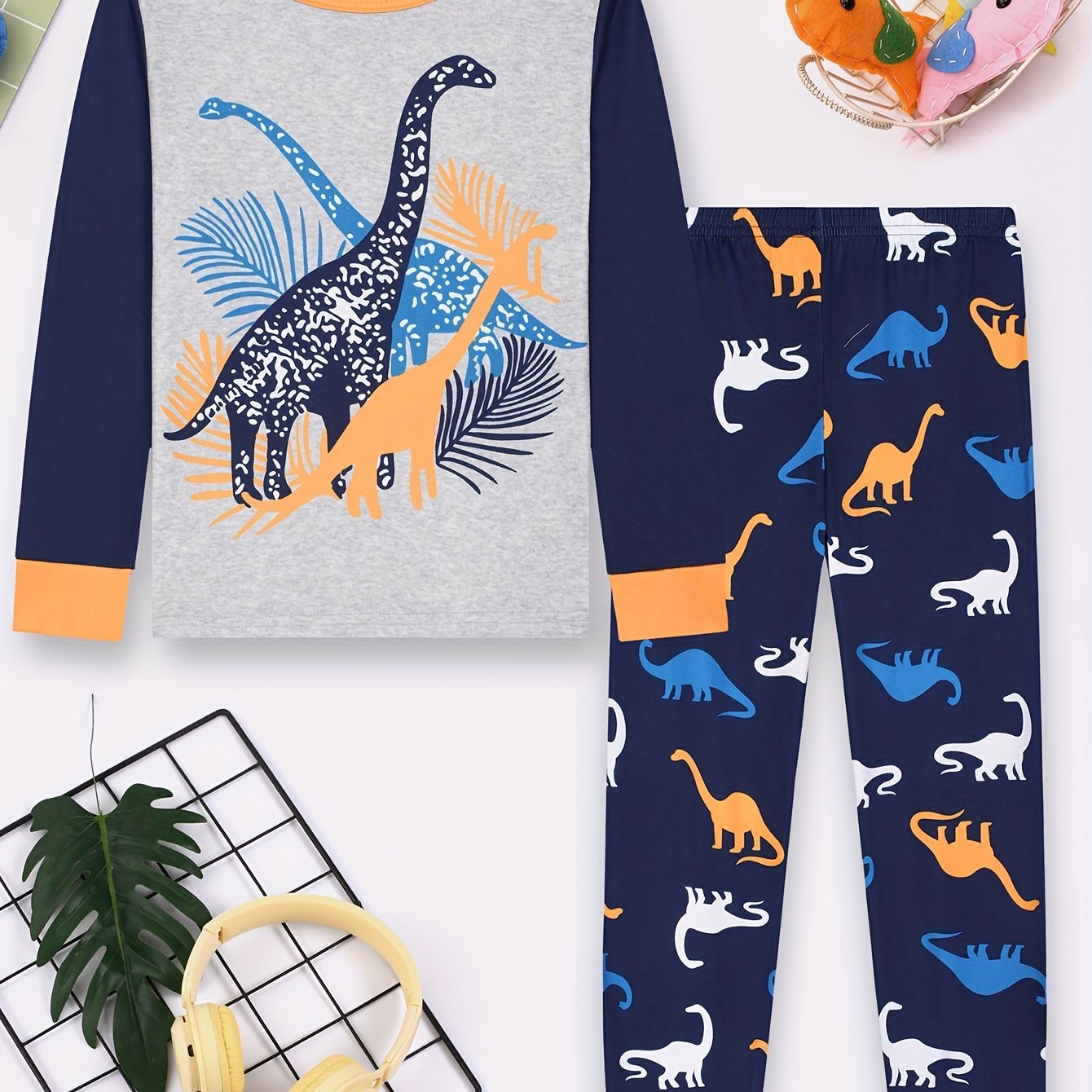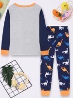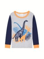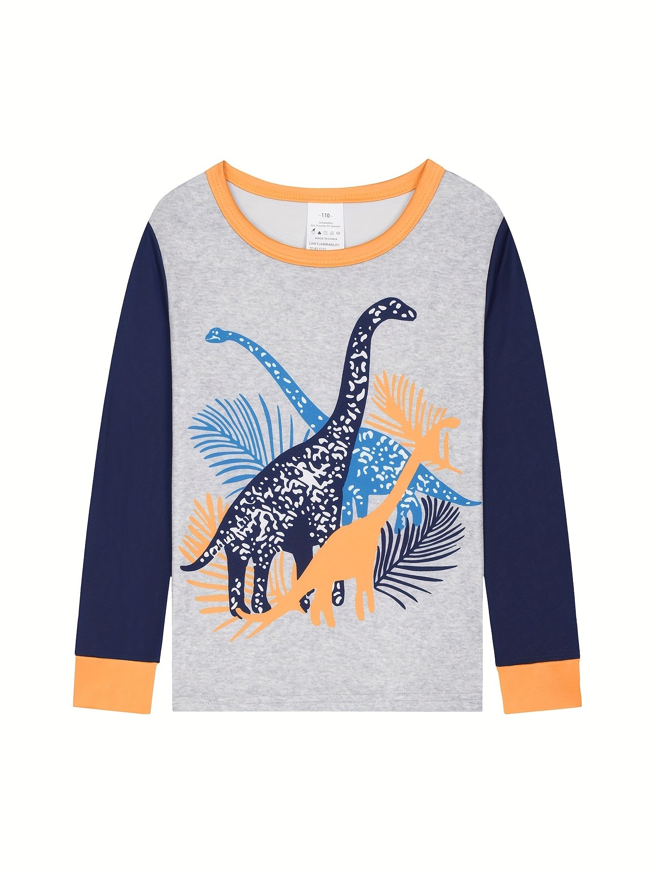 Início Vestuário Infantil / Juvenil Conjunto Infantil Com Mangas Compridas e Calças, Estampa dos Irmãos Dinossauros, Tecido Retardante de Chamas Testado, Cor Bege Claro, Confortável.