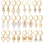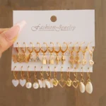 Conjunto de Brincos Suspensos Com Pérolas de Coração, Metal, Cor Dourada, Borboleta, Brincos para Mulheres, Concha, Joias da Moda, Brincos de Argola.