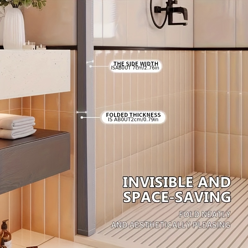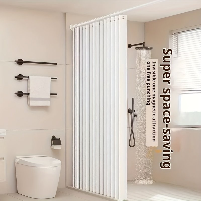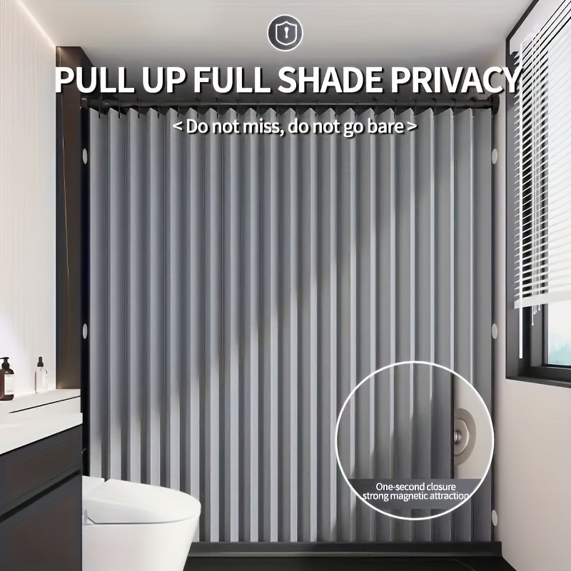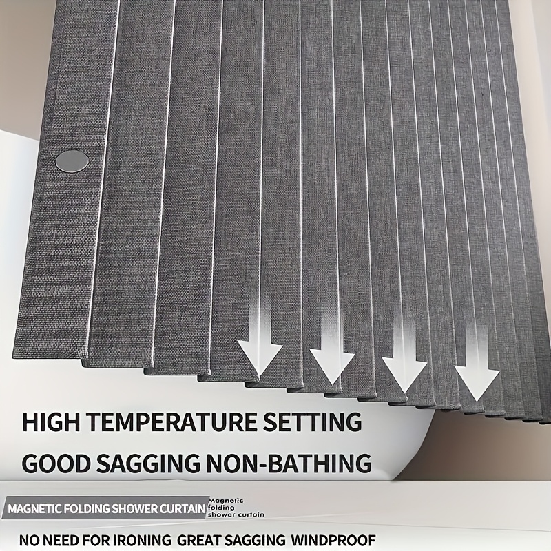 Cortina de Chuveiro Dobrável Com Listras Verticais Modernas de 1 Peça - Poliéster Resistente Ao Calor, Design de Sucção Magnética, Fácil Instalação e Armazenamento, Estilo Boêmio para Decoração de Banheiro, Cortina Resistente Ao Calor, Banheiro Minimalista, Tecido de Textura Lisa.