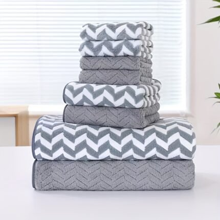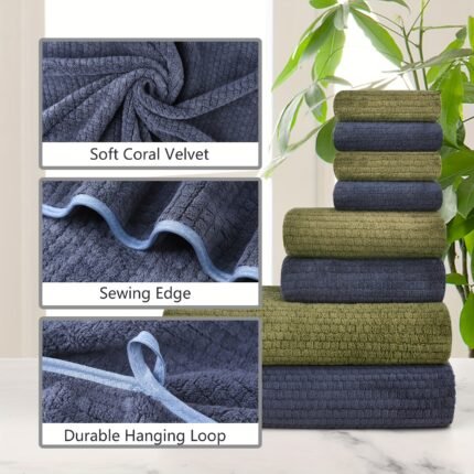 Conjunto de 8 Toalhas de Banho de Lã Coral, Macias, de Rápida Absorção e Secagem, 2 Toalhas de Banho, 2 Toalhas, 4 Toalhas Quadradas, 300 G/m², Leves e Portáteis, para Acampamento Ao ar Livre, Banheiro Doméstico, Decoração para Casa, Toalha de Banho, Toalha de Rosto, Toalha de Mão, Presente, Europeia e Americana.