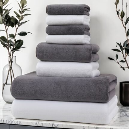 Conjunto de 8 Peças de Tiras Largas e Estreitas, 2 Toalhas de Mão e 2 Toalhas de Banho, 4 Toalhas de Rosto, Conjunto de 8 Peças de Toalhas, Toalhas para Áreas Externas, Toalhas de Acampamento, Toalhas de Caminhada, Toalhas de Negócios, Adequado para Spa, Massagem nos Pés, Vaporização de Suor, Produtos de Higiene Pessoal para Hotéis e Outros Clubes, Pano de Rosto.