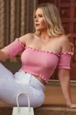 Palavras chaves: Cropped, Tricot, Canelado, Ciganinha, Manga Curta, Verão, Casual, Moda, Feminino, Descontraído