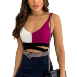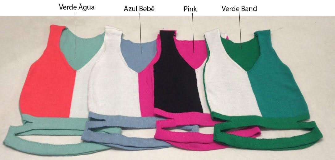 Cropped feminina. Blusa confeccionada em tricot Canelado Modal. Cropped sem manga tricolor. Confortável e linda, ideal para os dias mais quentes.