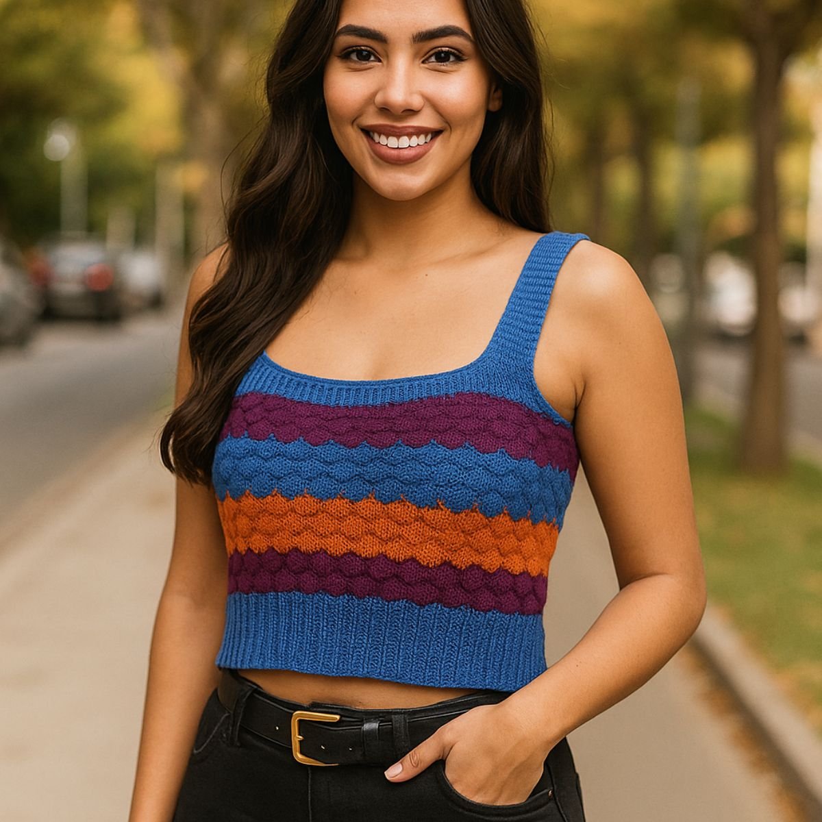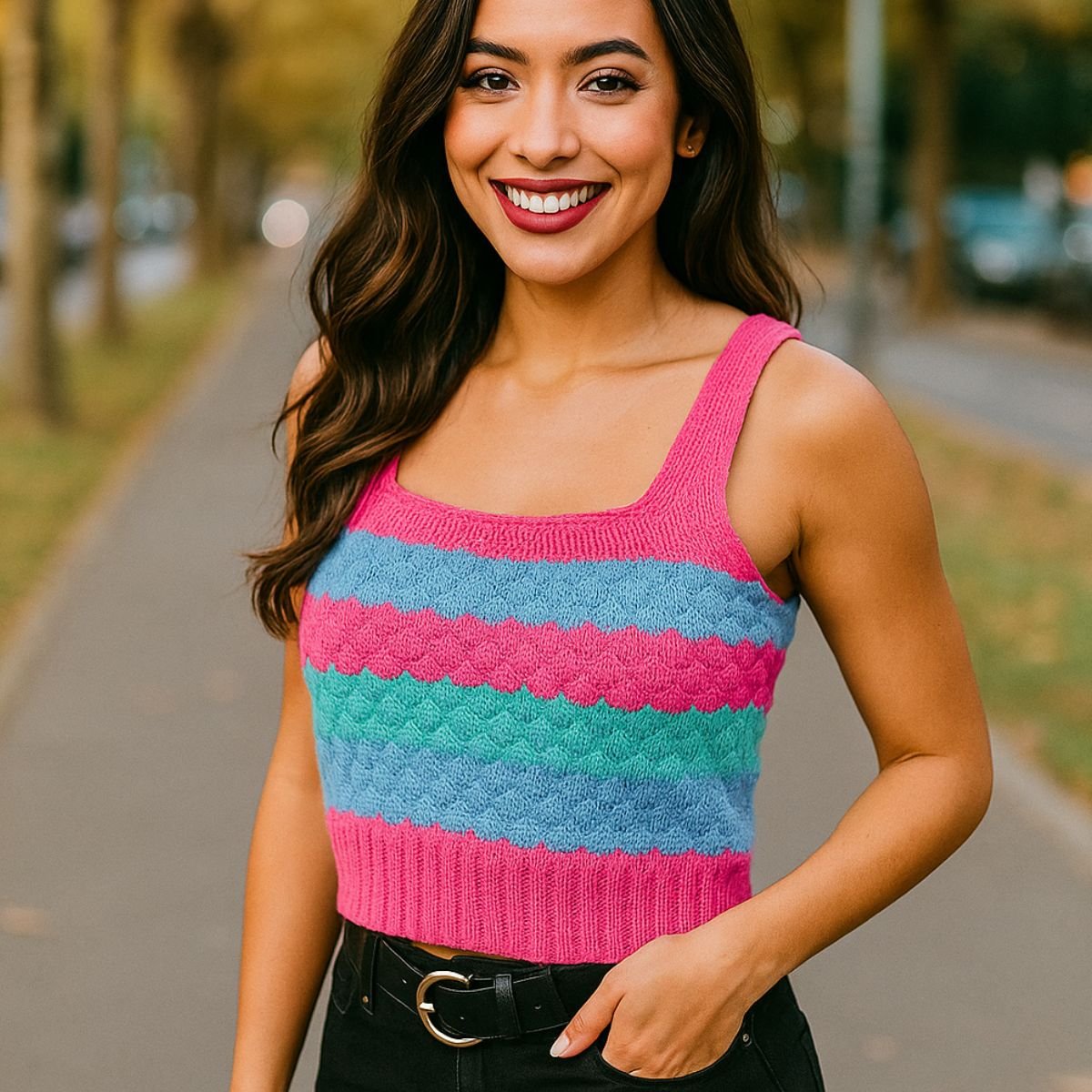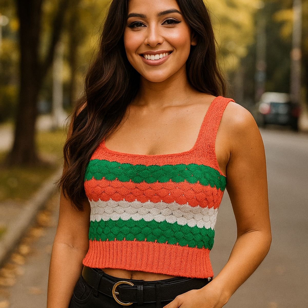 Palavras chaves: Cropped, Tricot, Tendência, Casual, Feminino, Versátil, Básico, Listrado
