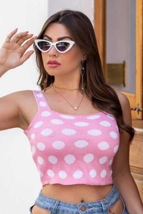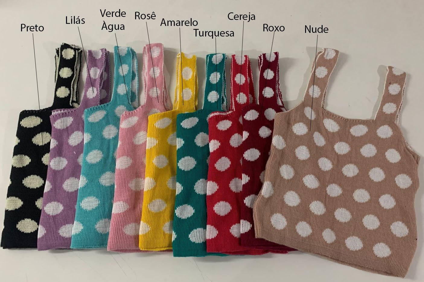 Cropped feminino sem mangas. Confeccionada em tricot canelado, tecido macio e confortável. Sem bojo, de alças grossas e decote redondo. Charmosa e elegante.