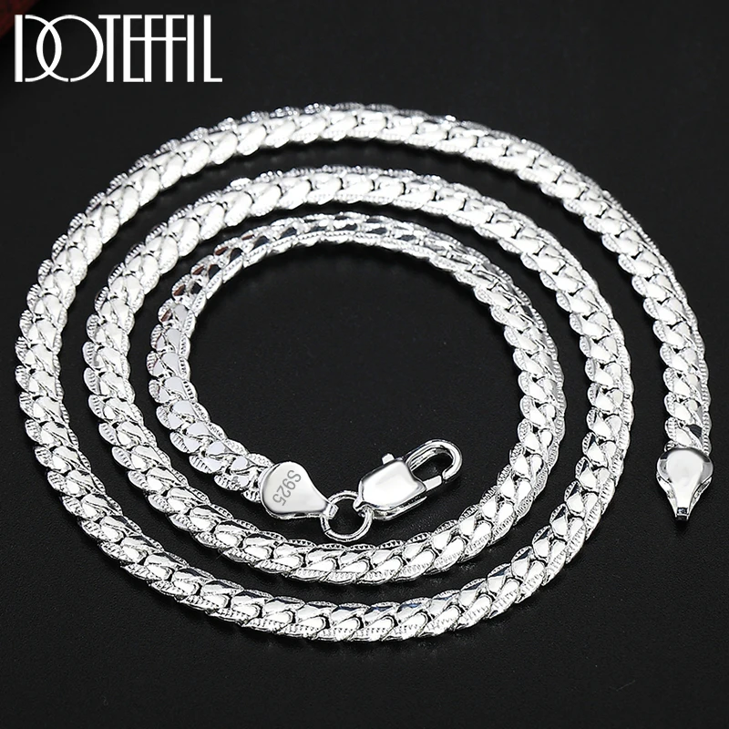 Doteffil 925 Prata Esterlina 8/16/18/20/22/24 Polegada 6mm Corrente Lateral Colar Pulseira p/ Mulher, Moda, Charme c/ Jóias de Luxo.