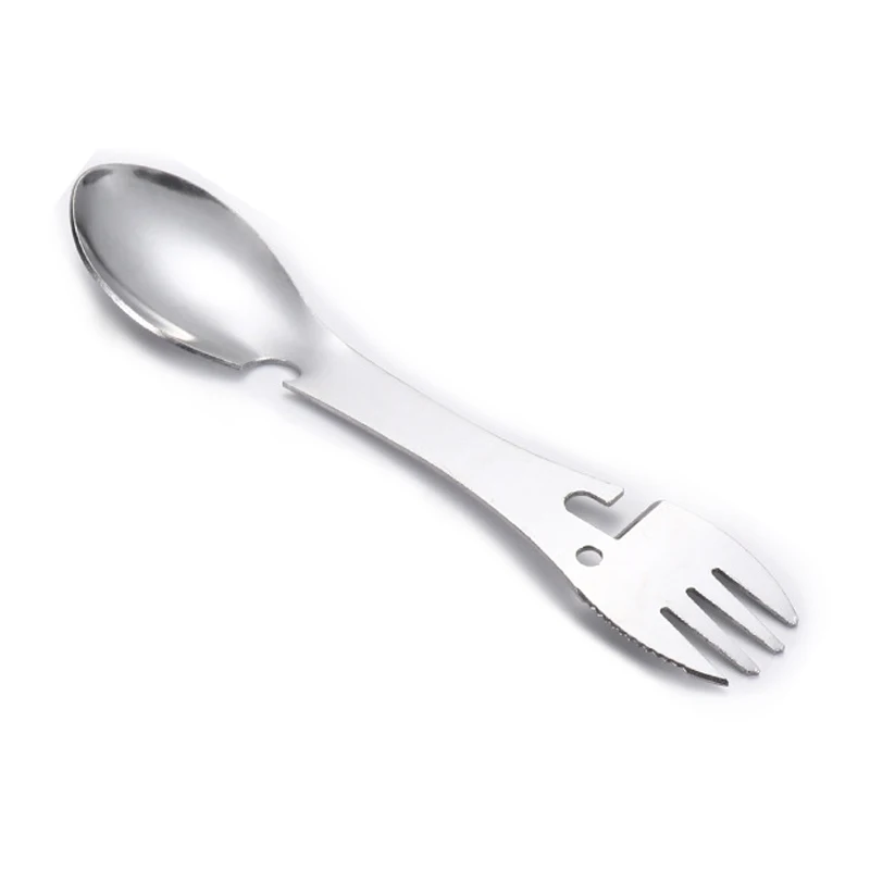 Ferramentas externas multifuncionais 5 em 1, aço inoxidável, kit edc de sobrevivência para acampamento, prático abridor de garrafa de garfo, segurança e sobrevivência.