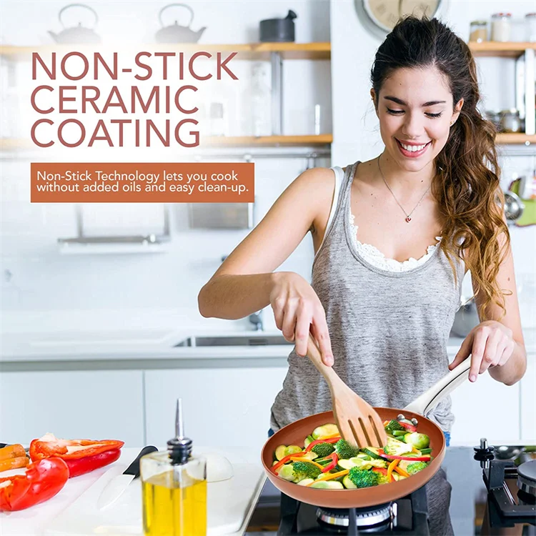 Frigideira Antiaderente 20 24 28cm Frigideira Com Revestimento de Titânio Cerâmico Redondo Cobre Ovo Panelas Cozinha Kc0459.