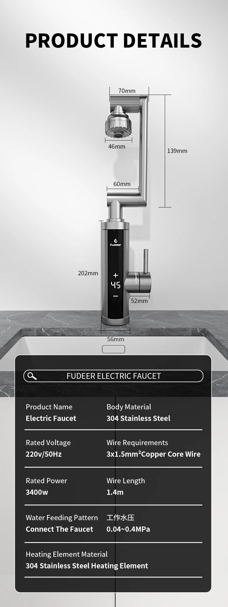 Seja o primeiro a avaliar “Fudeer 3400w 220v Cozinha Elétrica Aquecedor de Água Torneira Instantânea de Aço Inoxidável Torneira de Água Aquecedor Torneira de Aquecimento Frio.” Cancelar resposta