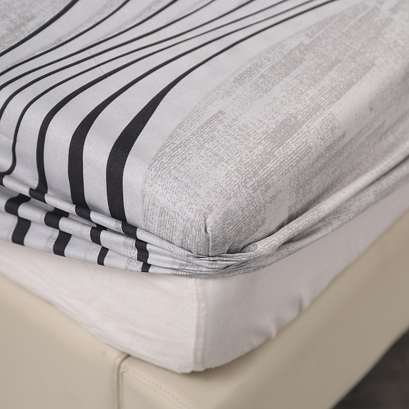 Início Utilitários do Lar Roupa De Cama Jogo de Cama de 3 Peças Com Listras Cinza, Incluindo Um Lençol de Baixo Com Elástico e Duas Fronhas. Sem Enchimento, Macio e Confortável, Ideal para Quarto e Quarto de Hóspedes. Lavável à Máquina.