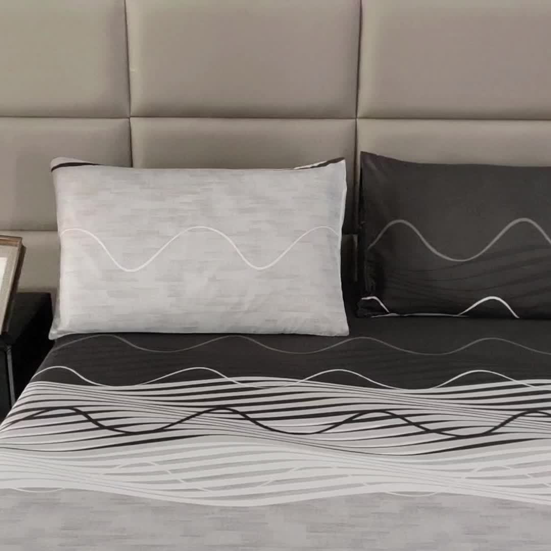 Conjunto de 3 Peças de Roupa de Cama Com Estampa Listrada e Estampada Em Torre, Protetor de Colchão, Lençol para Cama de Solteiro, Cama de Casal, Tamanho Grande para Quarto, Quarto de Hóspedes (um Lençol Com Elástico + Duas Fronhas, Sem Miolo).