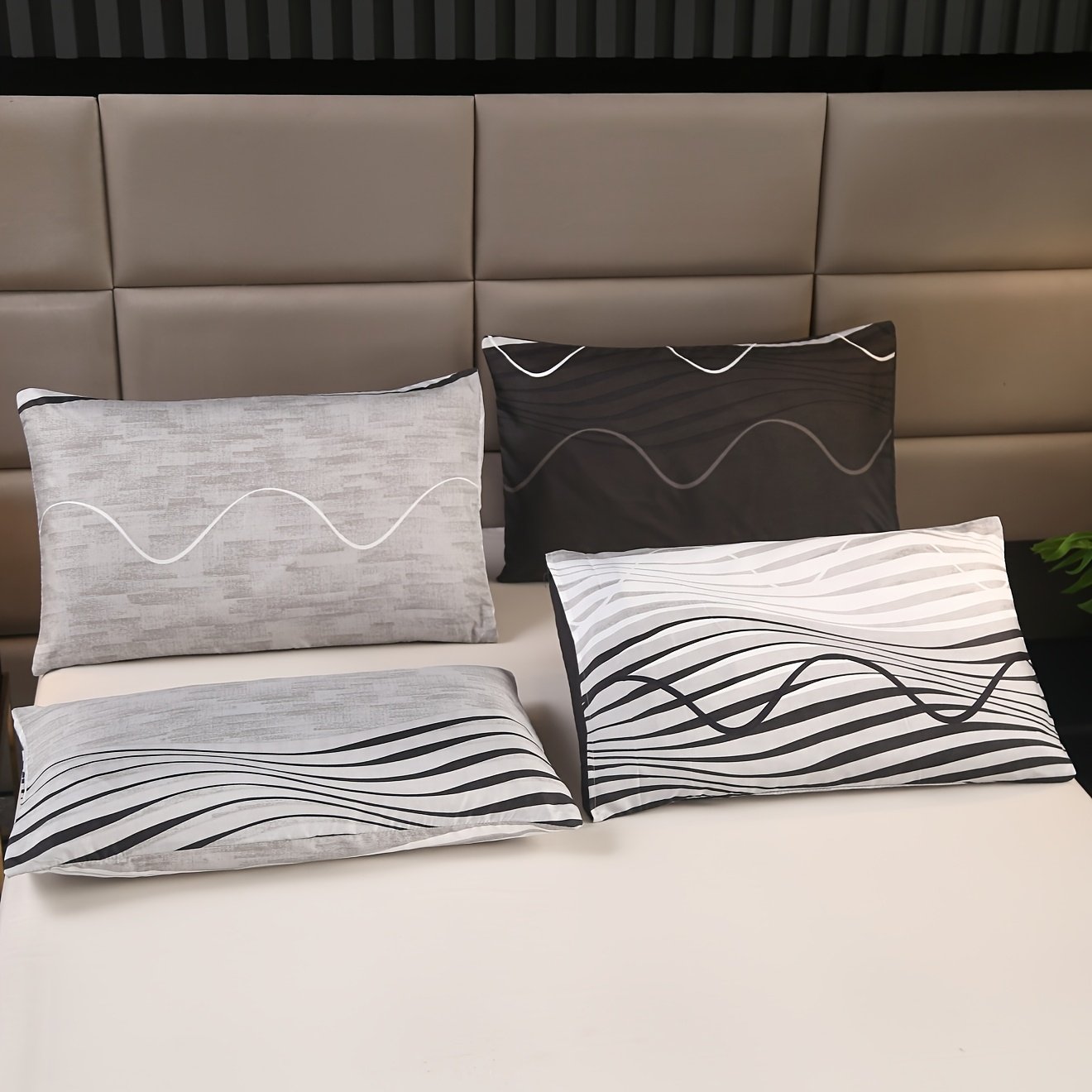 Conjunto de Cama Com Estampa Geométrica Moderna de 3 Peças – Inclui 1 Lençol Com Elástico e 2 Fronhas, Poliéster Macio, Lavável à Máquina, Conforto para Todas as Estações, Padrão Preto e Branco para Decoração Contemporânea de Quarto, Acessórios de Cama.