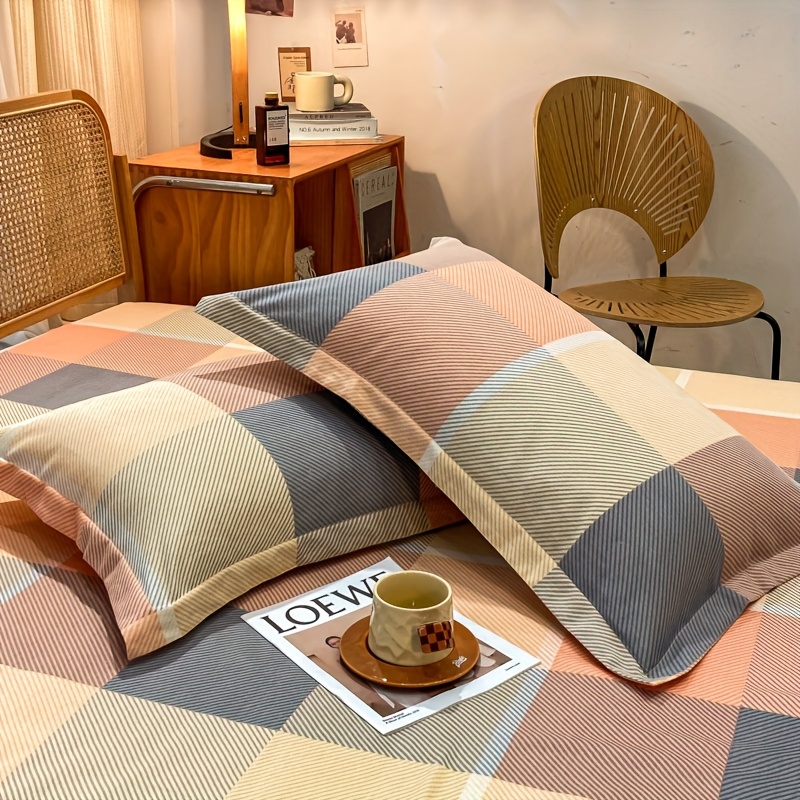 Conjunto de Capa de Edredom Xadrez de 3 Peças, Conjunto de Cama para Quarto, Quarto de Hóspedes (1 Capa de Edredom + 2 Fronhas, Sem Núcleo).