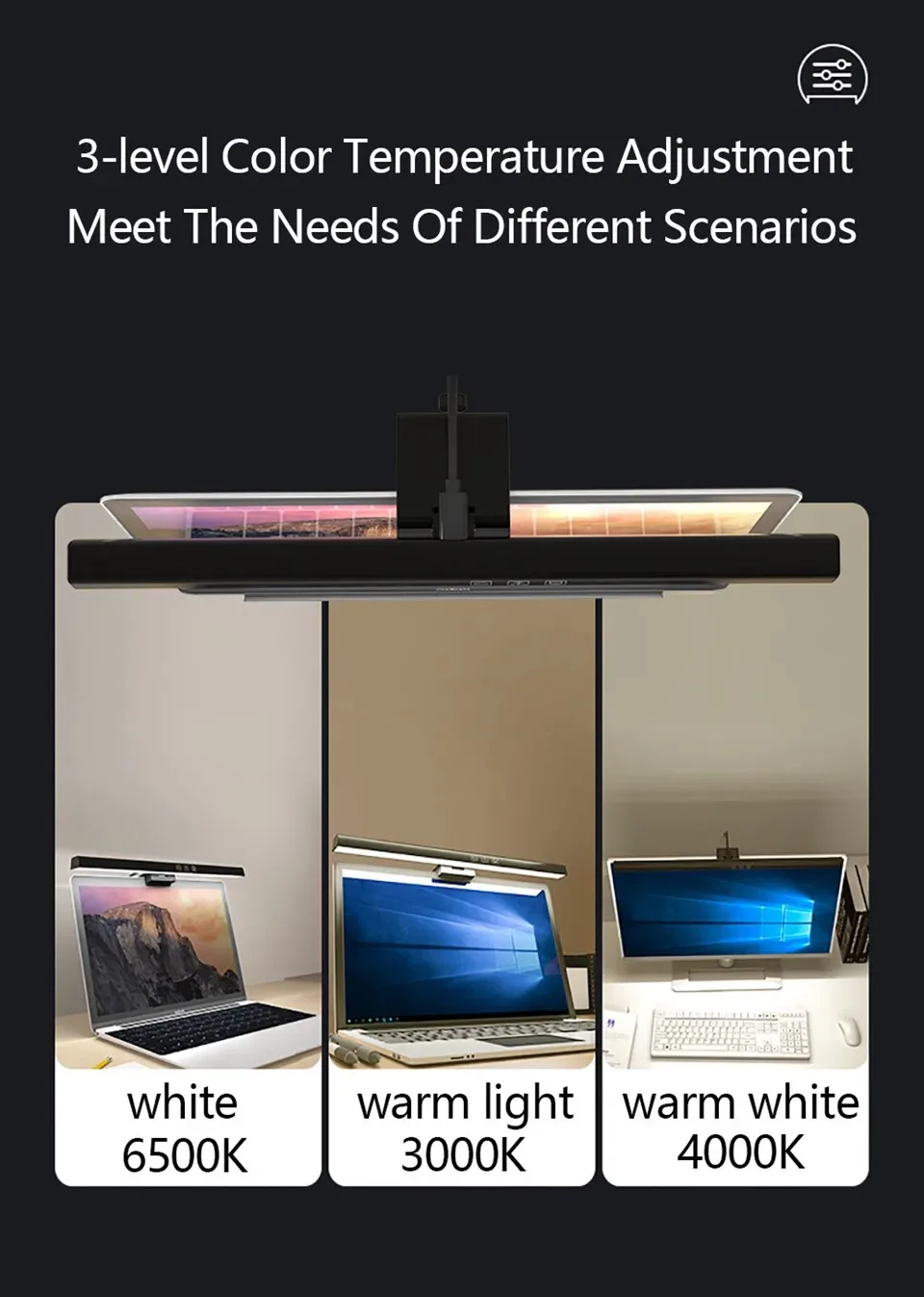 3. Uma Luz de Monitor Com Design Que Economiza Espaço, Prende-se na Parte Superior do Monitor, Em Comparação Com as Lâmpadas de Mesa Comuns, Economizando Espaço Valioso Em Sua Mesa.