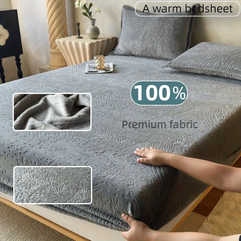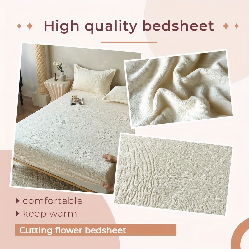 Lençol Com Elástico Estilo Simples, Capa Protetora de Colchão, Design Em Relevo Confortável e Bege Claro, Posicionamento Fixo Antiderrapante, Lavável à Máquina para Todas as Estações, Sem Fronha ou Almofada.