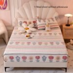 Jogo de Lençóis de Baixo Com Estampa Floral Hipoalergênica e Fronhas, Lavável à Máquina, Poliéster Com Estampa Ativa, Capa de Colchão Antiderrapante e Antipoeira, Acabamento Lavado, Gramatura do Tecido: 100g, Bolso Profundo de 30 a 34 Cm.