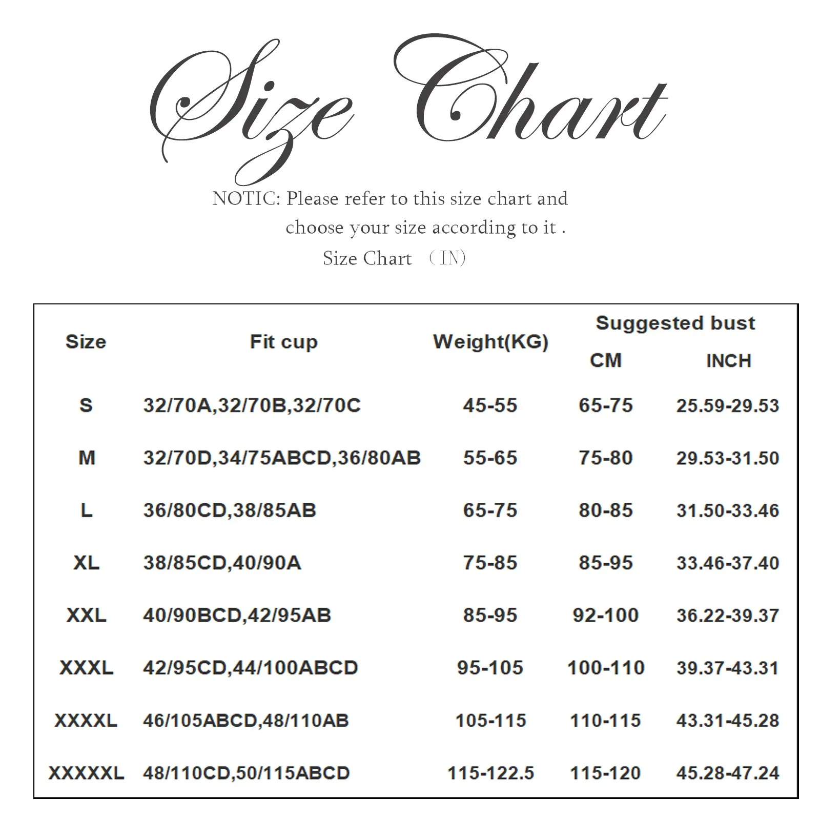 | XXXL | 42/95CD,44/100ABCD | 95-105 | 100-110cm/39,37-43,31” |