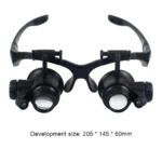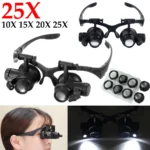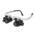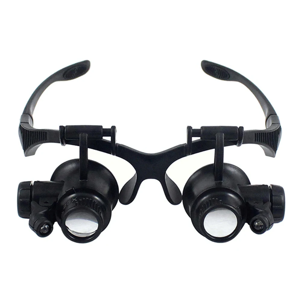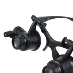 | Óculos de lupa para uso de cabeça lupas com LED portátil 10X/15X/20X/25X lente de observação ampliadora faixa de cabeça óculos para leitura joalheiros relojoeiro reparação Característica: 1.Quatro ampliações: 10X, 15X, 20X, 25X, adequadas para diferentes necessidades 2.Equipado com duas luzes LED, a cabeça da lâmpada pode ser ajustada 3.Corpo de lente ajustável para garantir um uso confortável Detalhes: Nota: 1 x lupa
