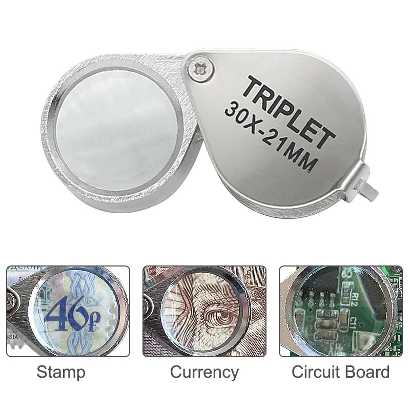 30X Pocket Loupe Magnifier Mini Jóias Lupa Dobrável Diamante Lupa Triplet Jewelers Eye Glass Tool Lupa Leitura Magnifier