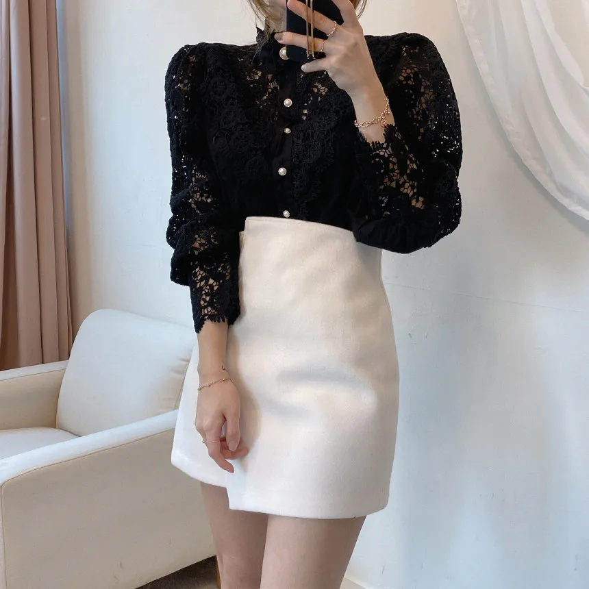 Manga Longa Blusa Feminina Oco p/ Fora Blusa de Renda Camisa Topos Feminino Blusas Moda Blusas Camisas Femininas.