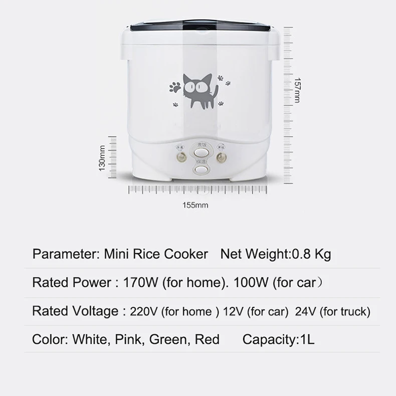 O mini fogão pode ser facilmente controlado com um botão.Cozinhar arroz e cozinhar no vapor o prato pode ser processado ao mesmo tempo.