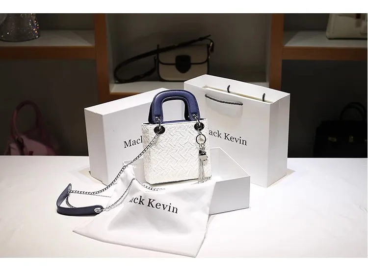 Moda e Popular Bolsa Quadrada Portátil Com Cor de Contraste Feminina Bonita e Bolsa de Ombro Com Decoração.
