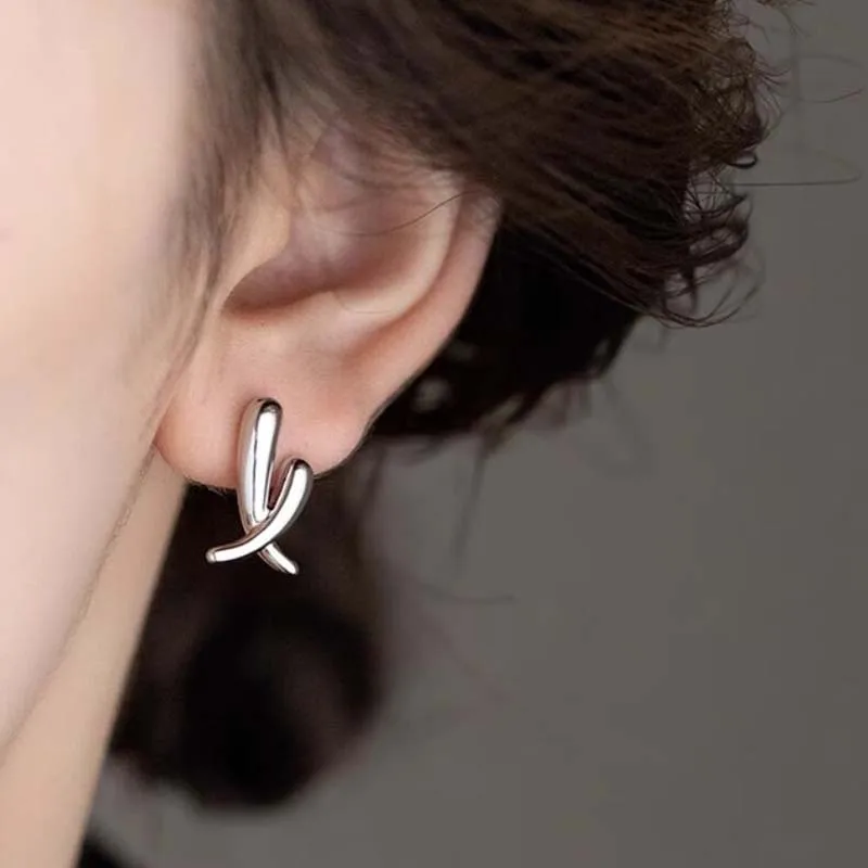 Moda Prata Cor Cruz Brincos P/ Delicado Simples Minimalista.