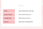 A Moissanite inferior a 0,5 quilates não é fornecido com o certificado Moissanite.