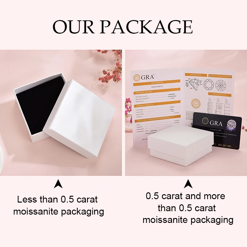Como a pedra moissanite inferior a 0,5 quilates é muito pequena para ser gravada com o código de certificado Moissanite.