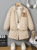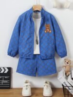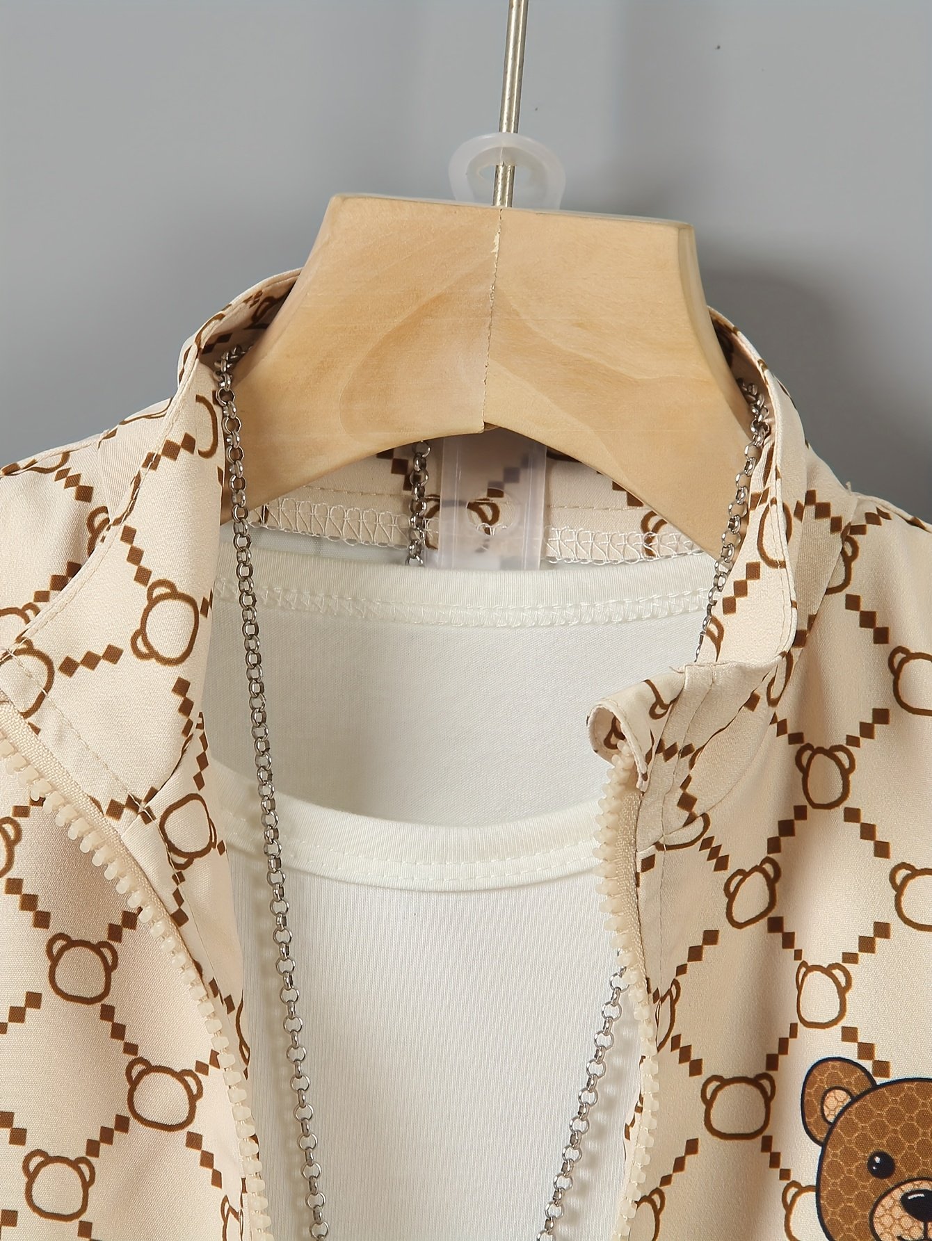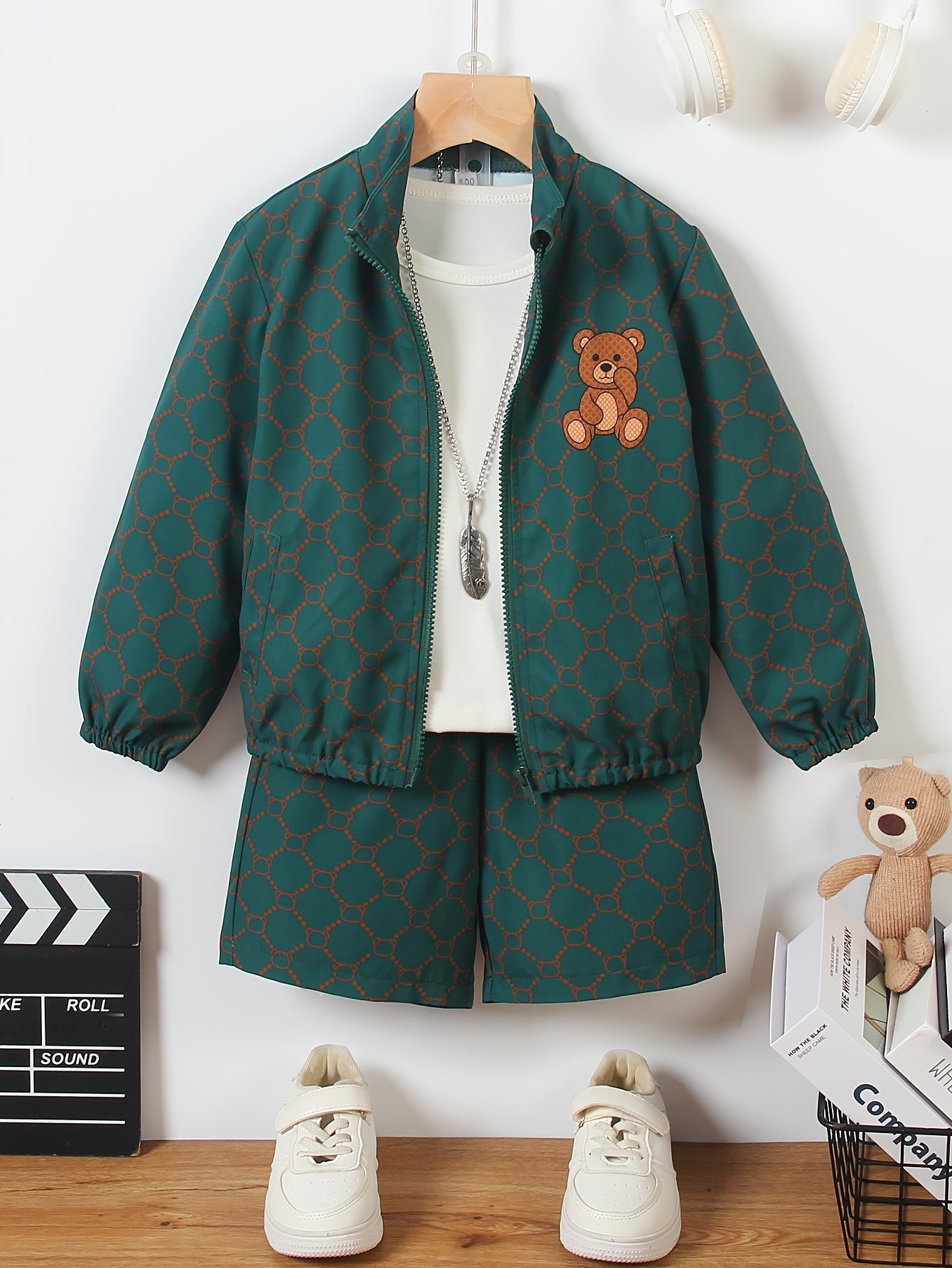 Moletom Com Capuz e Manga Comprida Com Zíper e Estampa de Urso para Crianças Pequenas e Shorts Com Cós Elástico – Roupa Esportiva e Descontraída, Tecido de Poliéster, Gola Alta, Caimento Regular, Ideal para primavera/verão/outono/inverno, Uso Casual | Blusa Com Estampa Divertida | Moletom Com Capuz Com Zíper, Moletom Com Capuz Com Estampa de Urso.