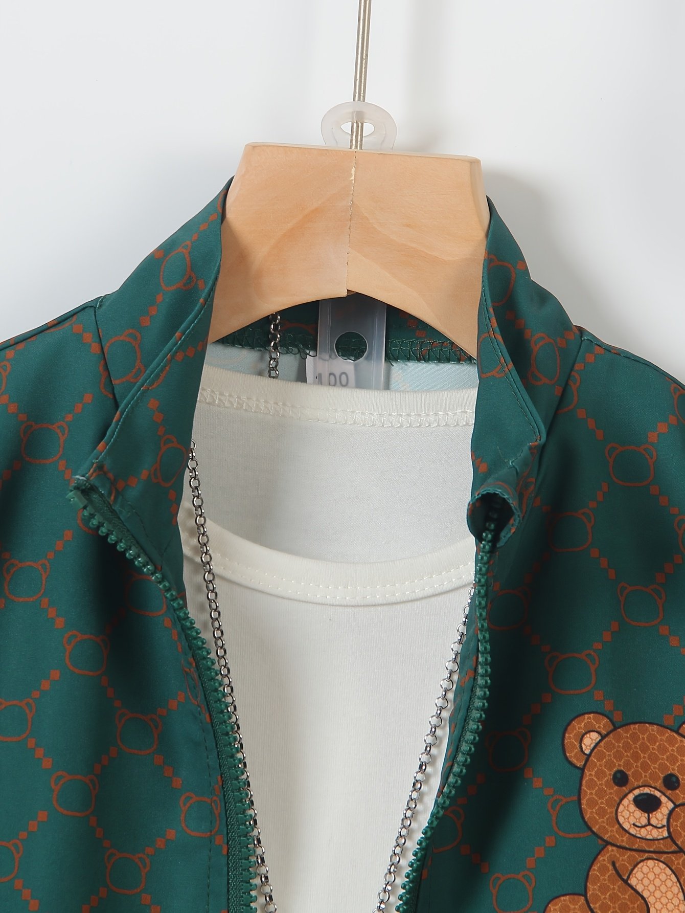 Especificações: Faixa Etária Aplicável: 12 Anos ou Menos Pessoas Aplicáveis: Meninos Tipo de Calça: Shorts Composição da Calça: 100% Poliéster Estilo da Gola: Gola Alta Contorno: Convencional Detalhes: Zíper Tecido: Não Estica Tipo de Ajuste: Regular Material: Poliéster Instruções de Uso: Lavagem à Máquina ou Lavagem a Seco Profissional Outro Material: Poliéster Estampa: Animais Tipo de Carcela: Carcela Tipo de Impressão: Estampa de Posicionamento Estação: Primavera / Verão / Inverno / Outono Transparência: Não Comprimento da Manga: Manga Longa Tipo de Manga: Manga Regular Estilo: Casual Tipo de Blusa: Camiseta Composição da Blusa: 100% Poliéster Método de Tecelagem: Tecido