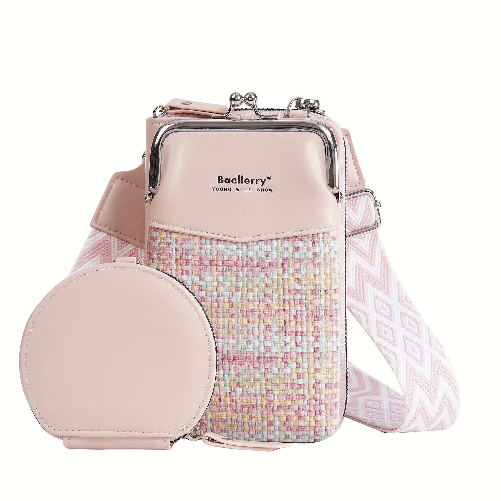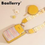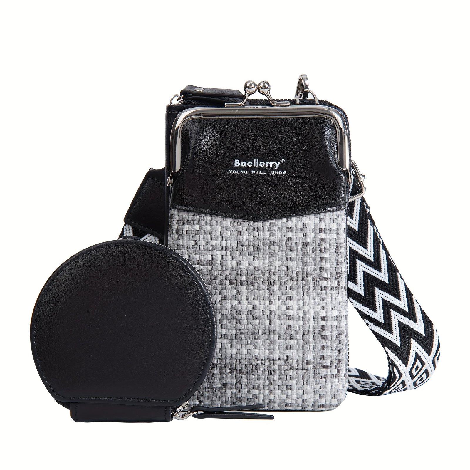 Nova Mini Bolsa Feminina para Celular Baellerry, Bolsa de Ombro Fashion Com Cores Contrastantes, Estilo Étnico, Alça de Ombro, Bolsa Transversal Versátil, Design Moderno e Casual.