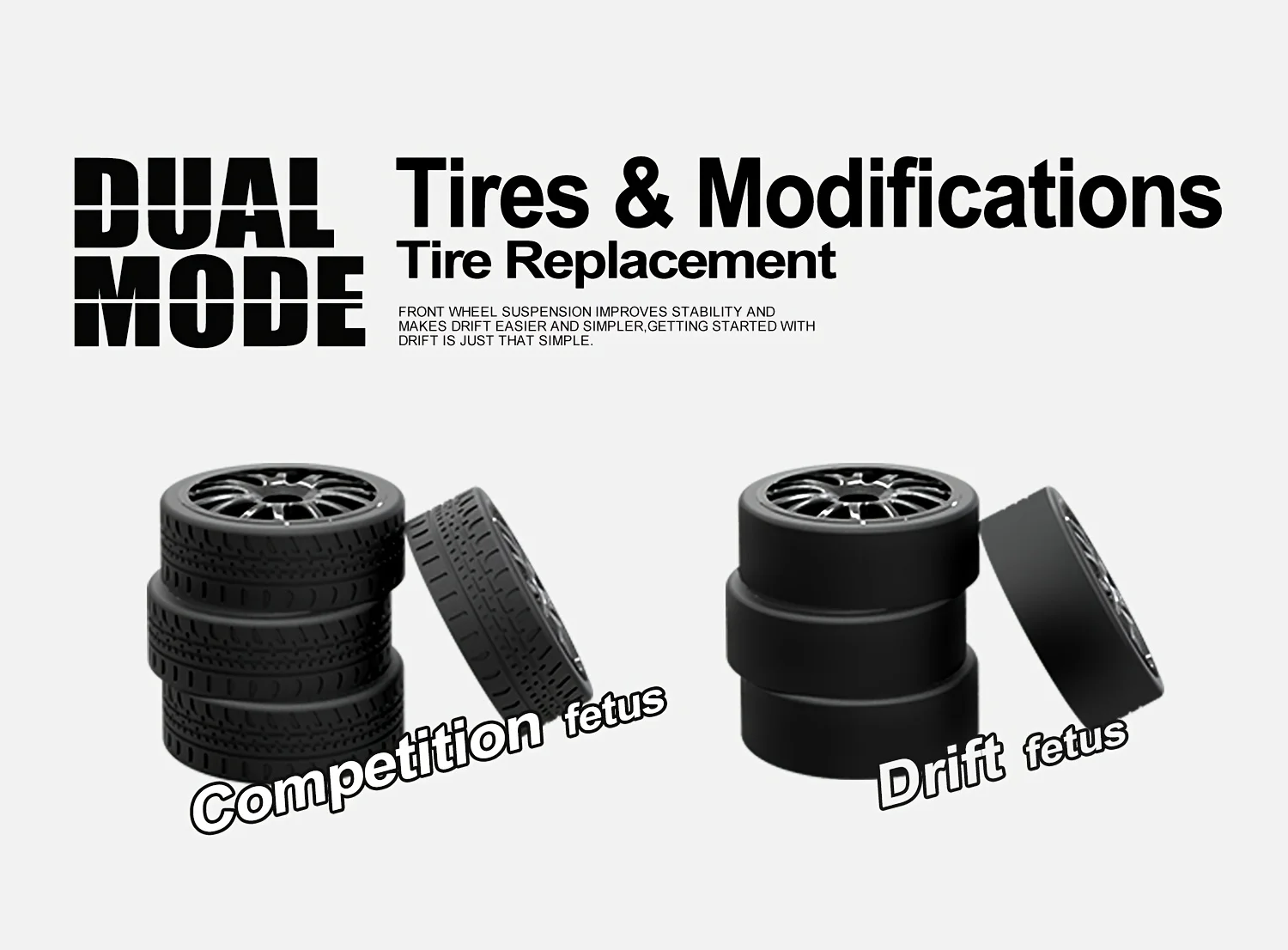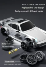 Carro de Controle Remoto de Deriva Prateada Inclui “Pneu de Corrida x 4+ Bloco de Estrada x 6”