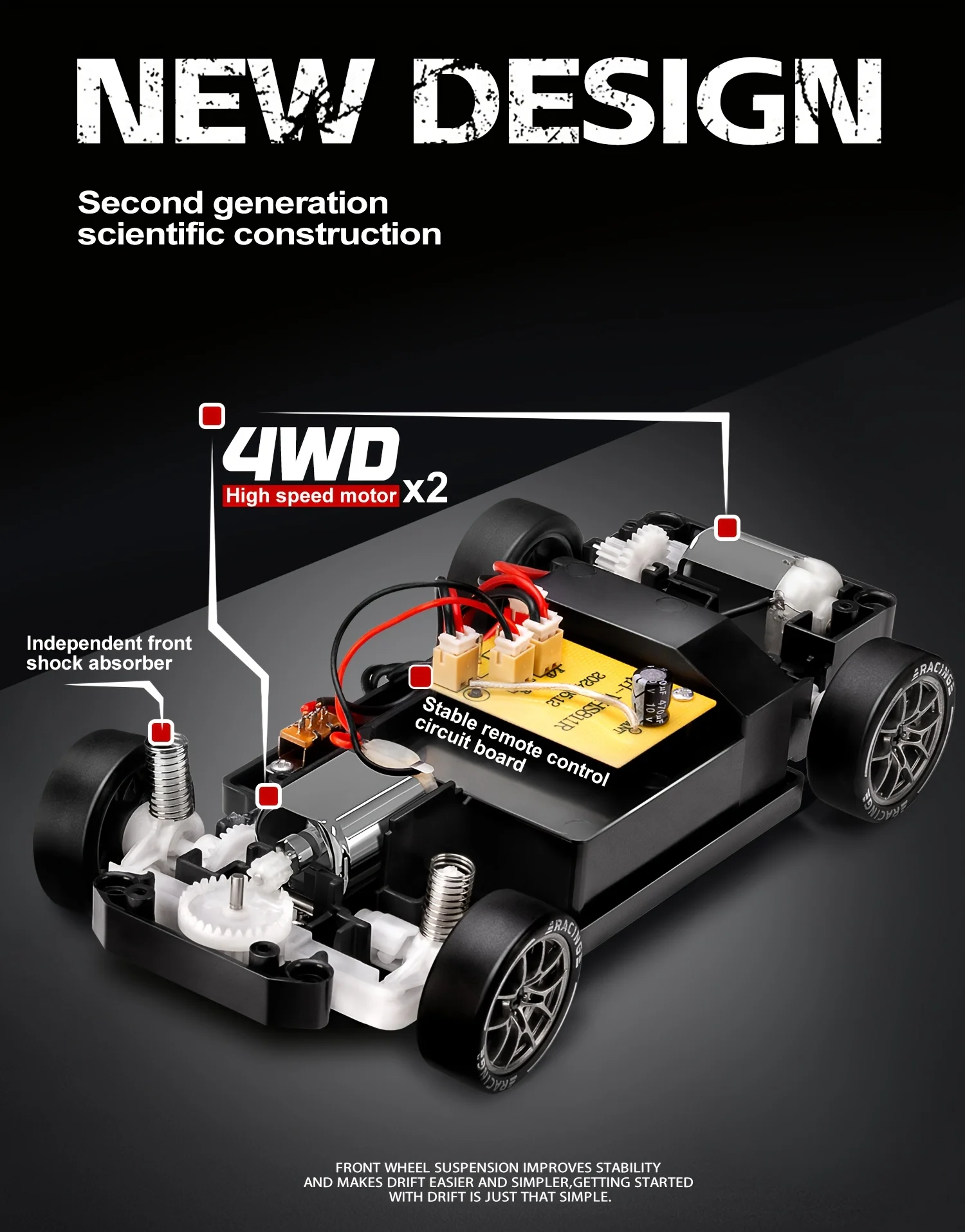 Novo Carro 4wd de Deriva de Controle Remoto Tamanho Completo 1:24 Mini Modelo de Carro de Corrida de Controle Remoto 2.4g Rádio de Alta Velocidade Brinquedo Pra Meninas e Meninos Carro Rc.