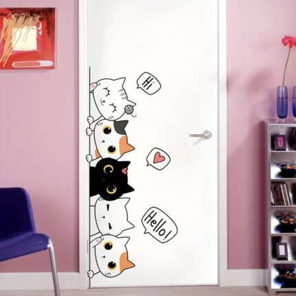 Adesivo de Parede Autoadesivo “Diga Olá para Você, Gato”, Decoração de Porta, Pôster Autoadesivo para Decoração de Parede, Pintura Decorativa Em Vidro.