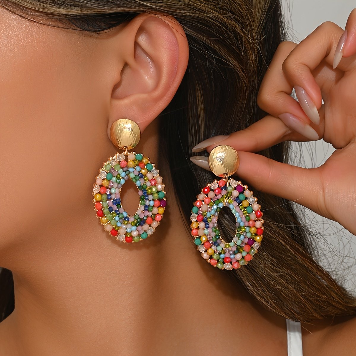 Especificações: Material da Agulha de Orelha: Aço Inoxidável Material Principal: Cristal Artificial Ocasião: Uso Diário; Férias Estação: Todas as Estações Estilo: Boho; Férias