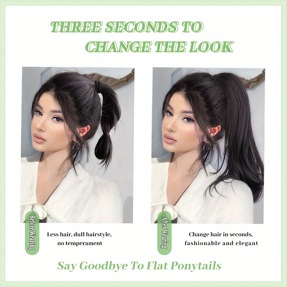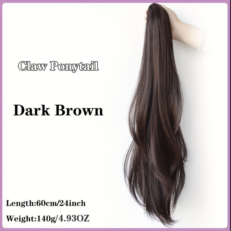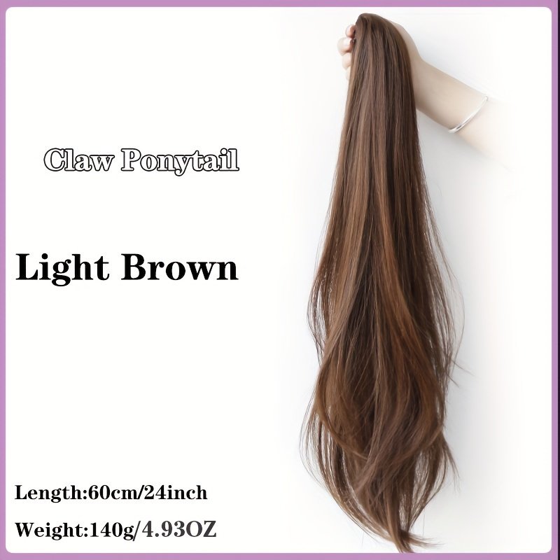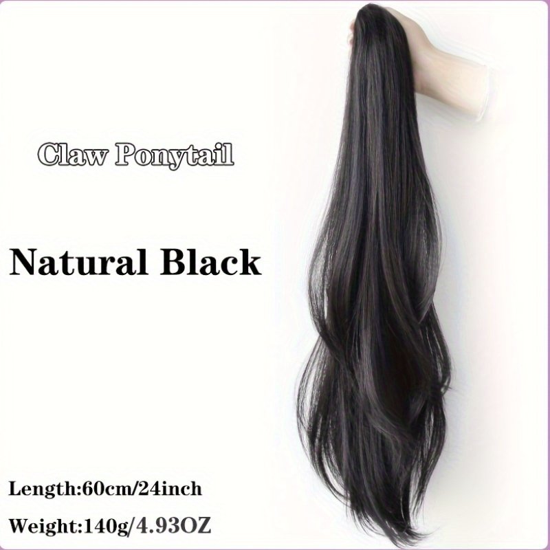 Peruca de Extensão de Cabelo Sintético Com Presilha para Rabo de Cavalo, Preta Natural, 60 Cm, Peruca Longa e Reta Com Presilha para Rabo de Cavalo Feminino.