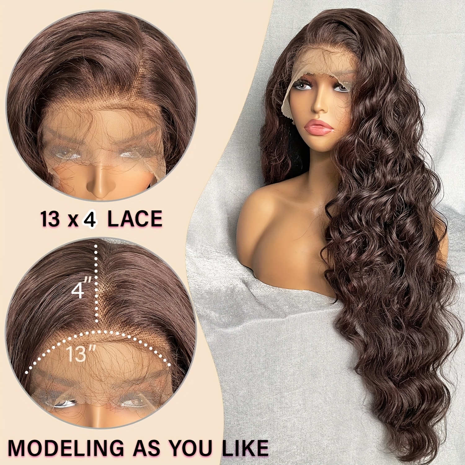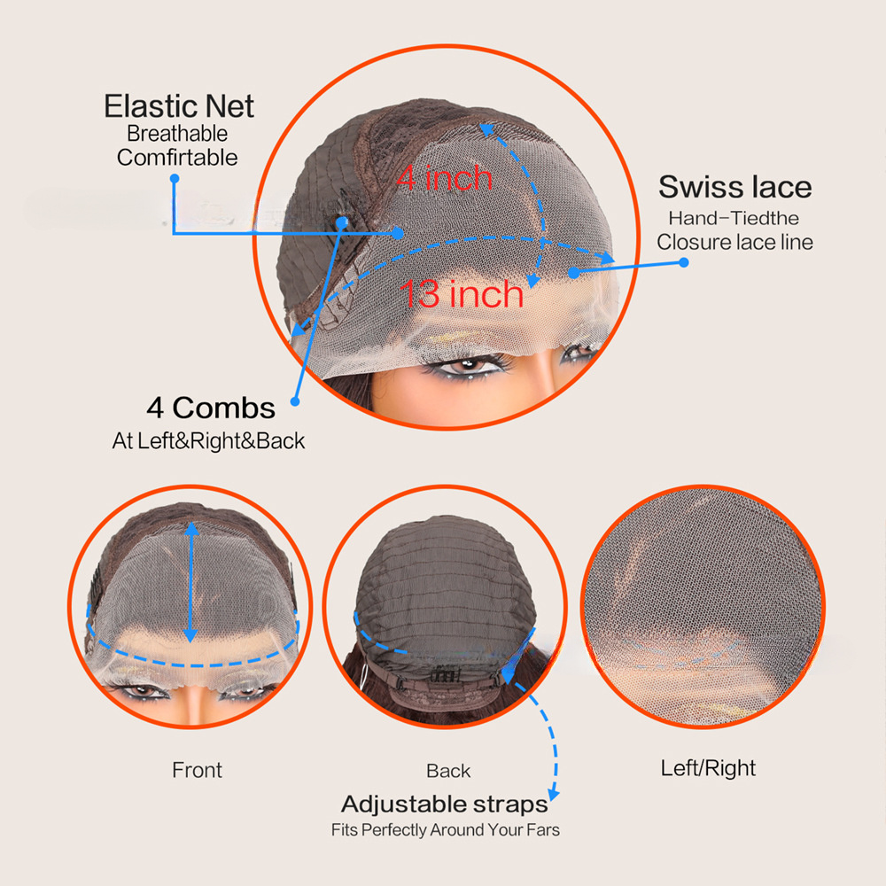 Especificações: Cachos: Ondas D'água Gênero: Feminino Material do Cabelo: Fibra de Alta Temperatura Área da Renda: 13*4