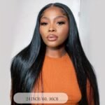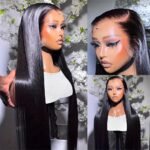Peruca 360 Full Lace Frontal Natural Black Bone Straight Human Hair Wig para Mulheres Pré-Depiladas Peruca de Cabelo Virgem Brasileiro Pode Fazer Parte Livre Peruca de Renda Reta Peruca 100% Humana para Mulheres.
