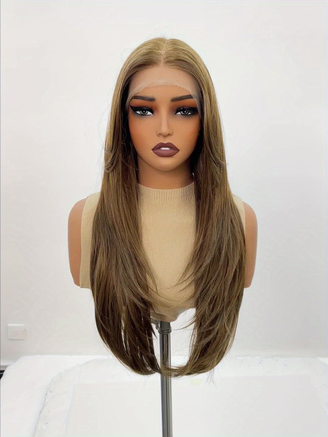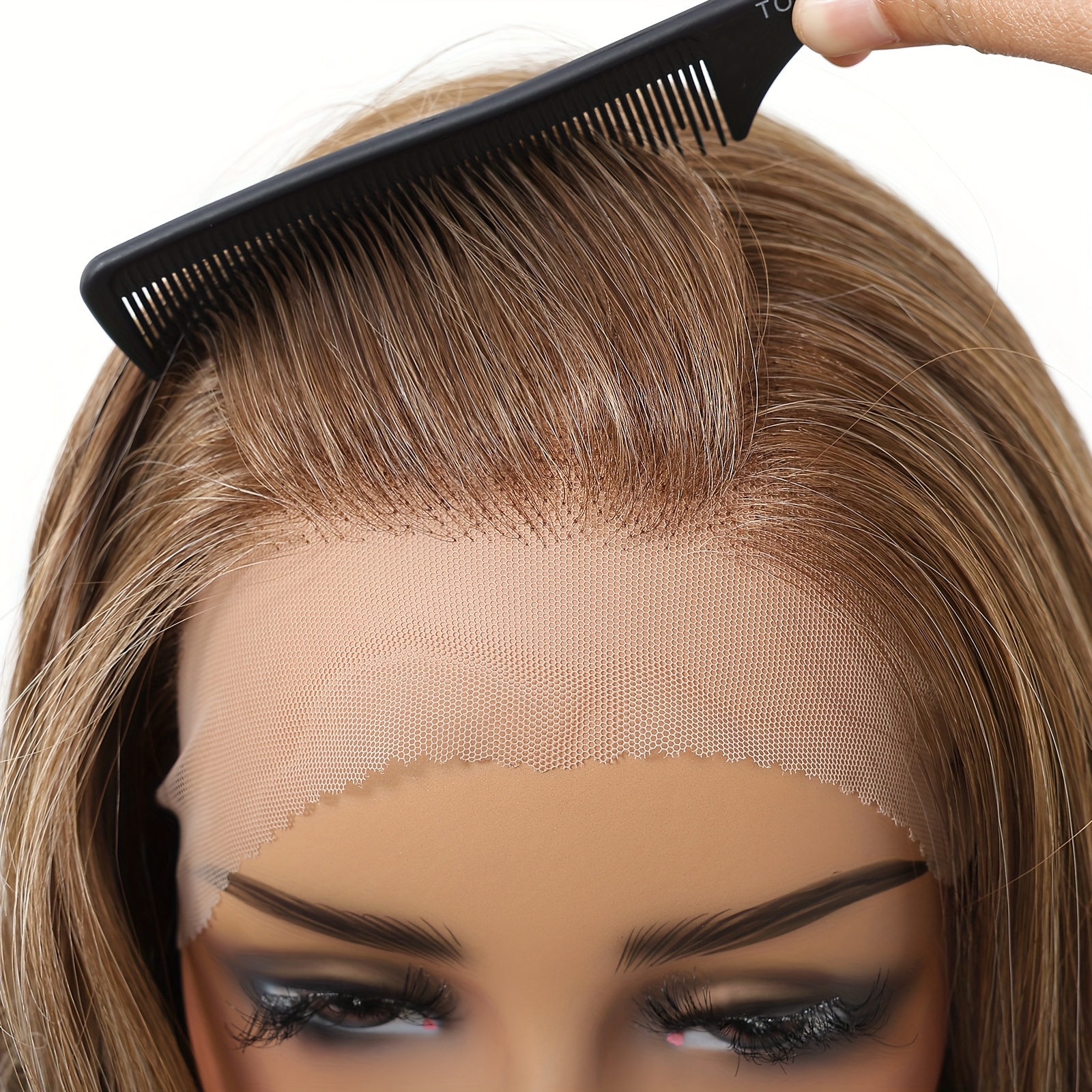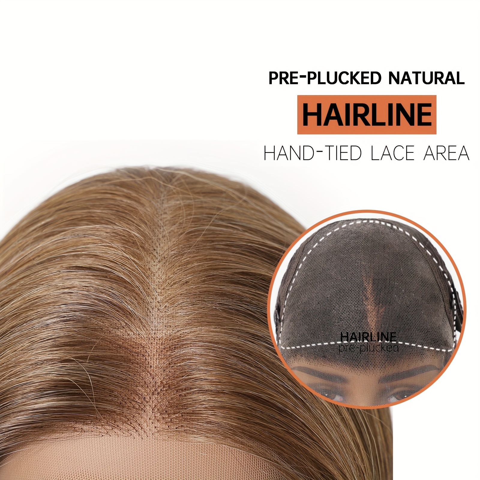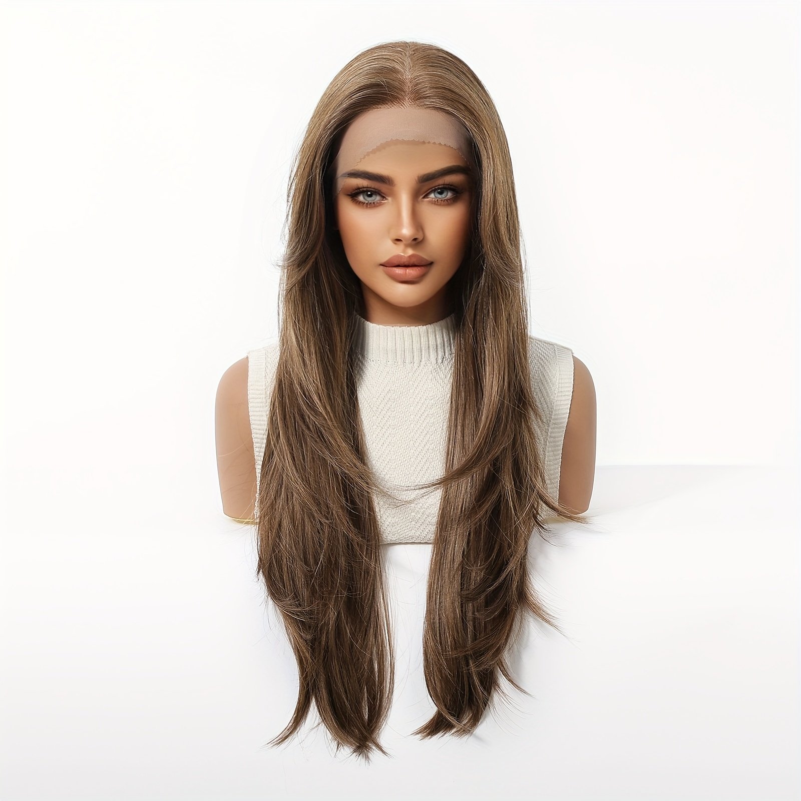 Início Beleza e Estética Perucas e Laces Peruca Frontal de Renda Transparente Hd 13×6, 66,04 Cm, Cor Marrom Com Mechas, Cabelo Liso, Peruca de Renda Sintética, Sem Cola, Com Linha Capilar Natural Pré-depilada, Uso Diário para Festas, Aparência Natural e Ajuste Confortável, Estilo Elegante e Versátil para Mulheres.