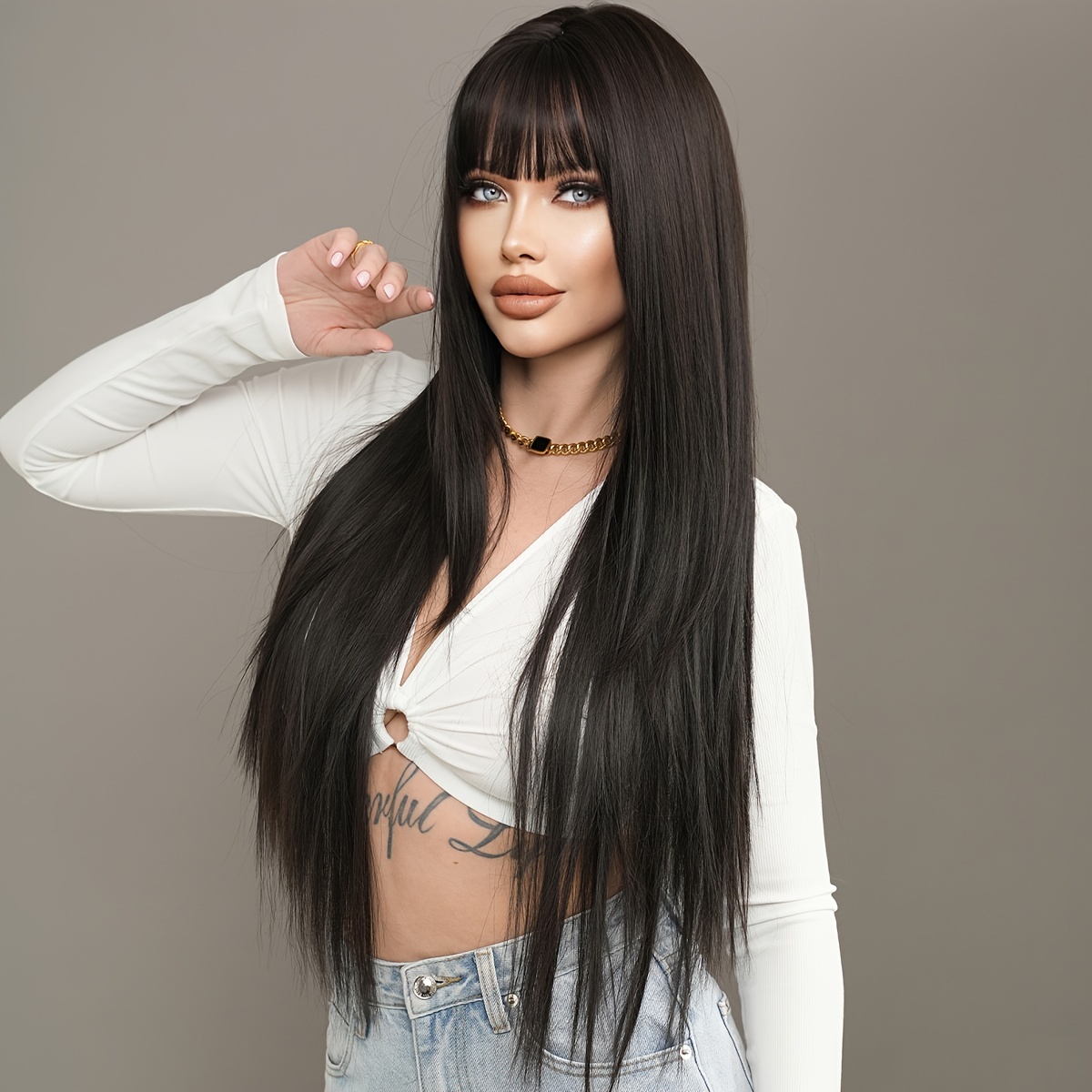 Especificações: Marca: 7jhh Wigs Tipo de Touca: Rede Rosa Com Couro Cabeludo Falso Cachos: Cabelo Liso Gênero: Feminino Material do Cabelo: Fibra de Alta Temperatura