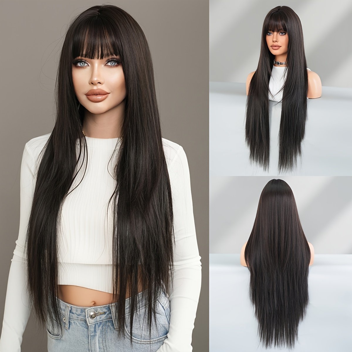 Especificações: Marca: 7jhh Wigs Tipo de Touca: Rede Rosa Com Couro Cabeludo Falso Cachos: Cabelo Liso Gênero: Feminino Material do Cabelo: Fibra de Alta Temperatura