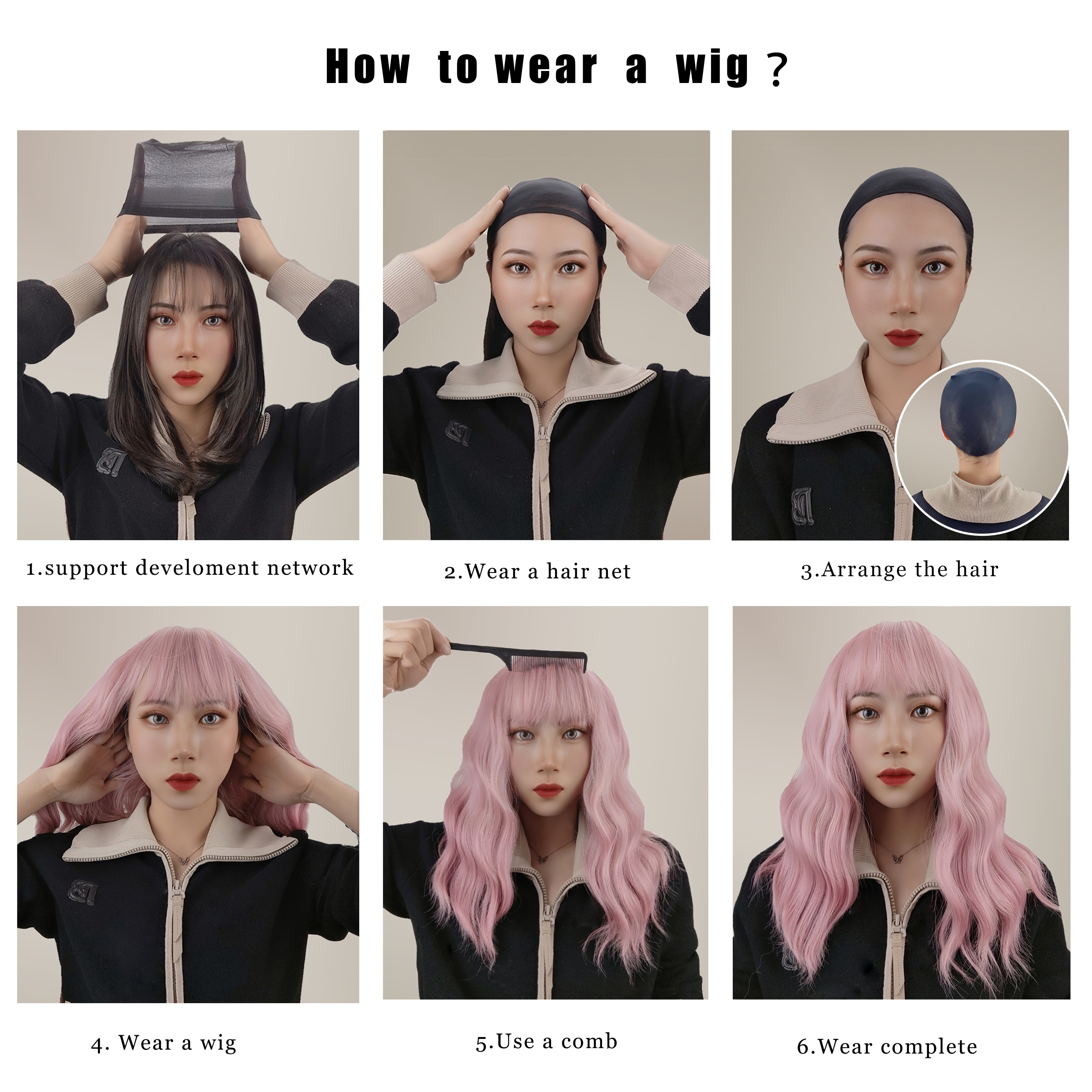 Especificações: Tipo de Touca: Rede Rosa Cacho: Ondulado Cacheado Gênero: Feminino Material do Cabelo: Fibra de Alta Temperatura