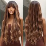 Início Beleza e Estética Perucas e Laces Perucas de Cabelo Longo Ondulado e Cacheado Com Corte Borboleta de 71,12 Cm Com Franja para Mulheres, Perucas de Substituição de Cabelo de Fibra Sintética para Uso Diário Em Festas.