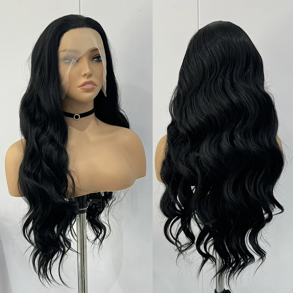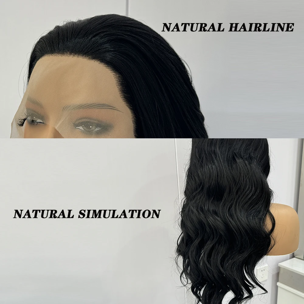 Peruca Preta Peruca Dianteira do Laço Sintético Cabelo Onda Longa Corpo Ondulado Peruca para Mulheres Fibra Resistente Ao Calor Frente Lace Natral Daily Cosplay.